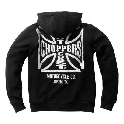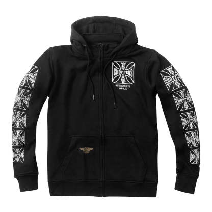 BLACK 330 GRAMS 80-20 COTTON/POLYESTER ZIP HOODY, WITH FULLY EMBROIDERED OG CROSS ON FRONT, BACK AND SLEEVES.